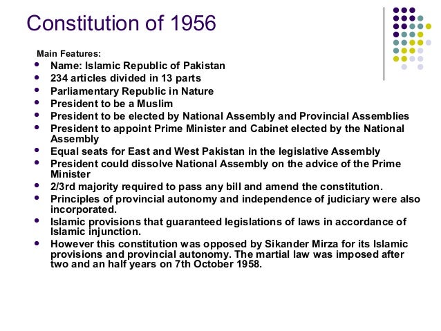 76+ pages constitution of pakistan 1947 to 1956 2.6mb. In East Pakistan Bhashani as president Ata Ur Rehman as vice President Shamsul Haq as General Sectary. The constitution provides for equal representation in the parliament of both provinces East and West Pakistan through the principle of Parity. After that provincial Awami League was emerged. Read also 1956 and understand more manual guide in constitution of pakistan 1947 to 1956 The Constitution is intended to guide Pakistans law its political culture and system.